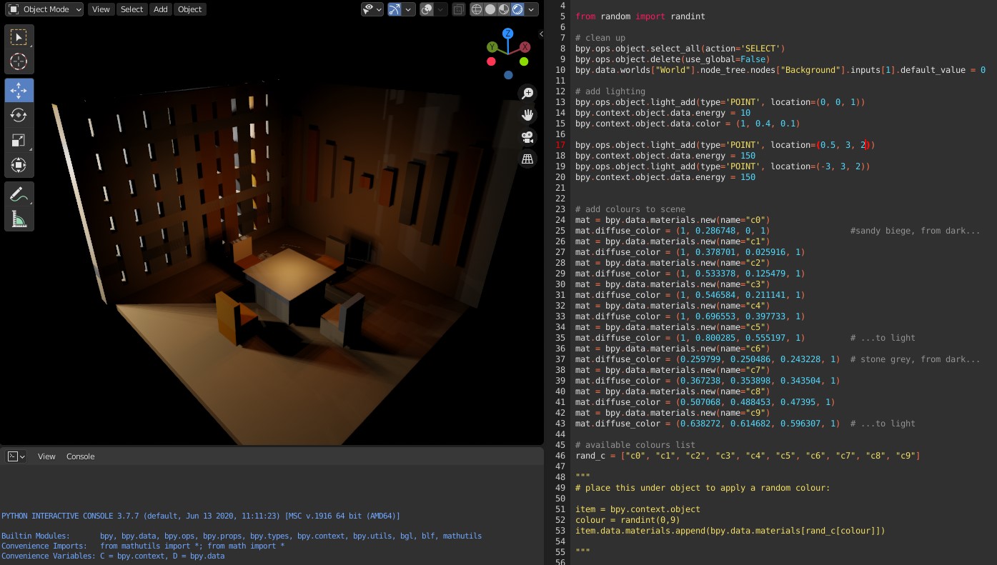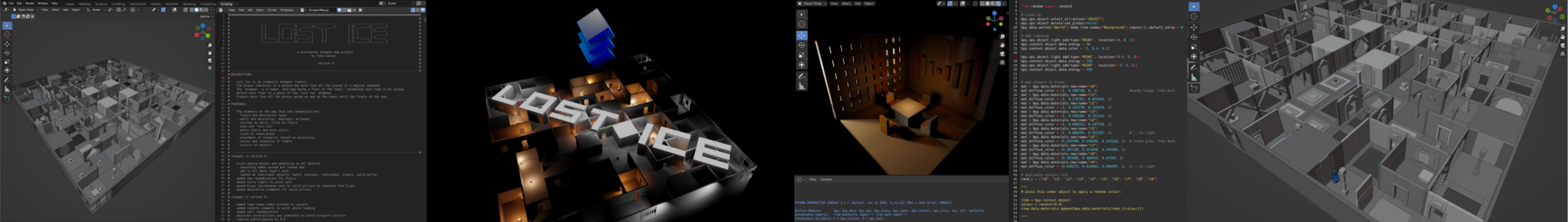 I decided to create my randomised maps using the Blender 3D computer graphics software, writing the code in Python. The procedural generation algorithm I crafted was designed to create diverse and intricate maps for each tower floor of the game world.