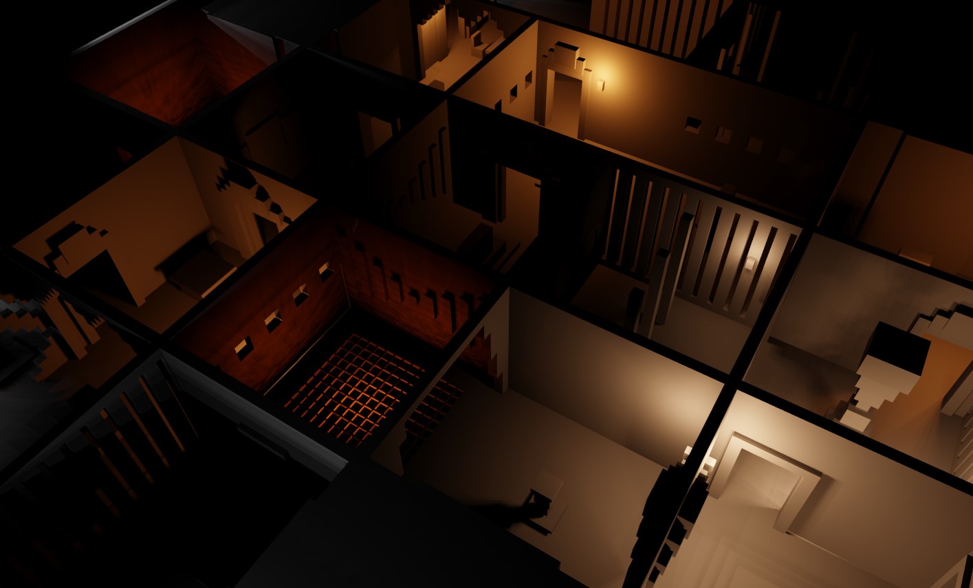 - Randomized Layouts:Each floor’s layout, including walls, doorways, and room configurations, was generated to form complex mazes.